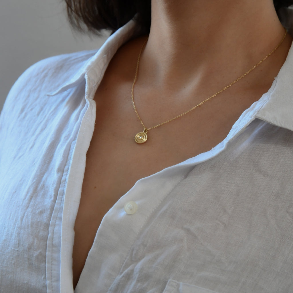 The pendant is crafted in solid 9K yellow gold from a Fairmined certified mine and the 9K chain is 100% recycled gold.